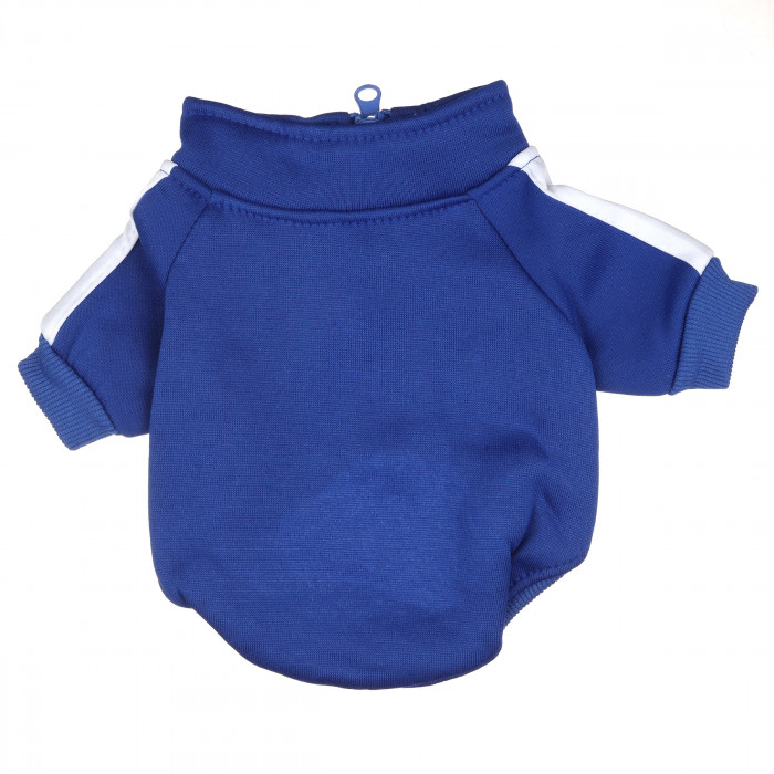 Спортивна кофта для собак стане відмінним варіантом одягу для активних прогулянок з вашим хвостатим другом. Виготовлена з високоякісних матеріалів, кофта не вимагає складного догляду і служить довго. Вона має зручну посадку, не сковує рух і дихання тварини. Дизайн кофти виконаний у синьому кольорі з білими смужками, надаючи вашому улюбленцю стильного та елегантного вигляду, підкреслюючи його характер та індивідуальність.