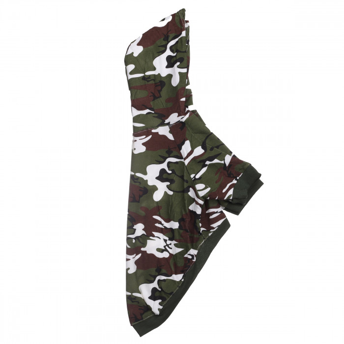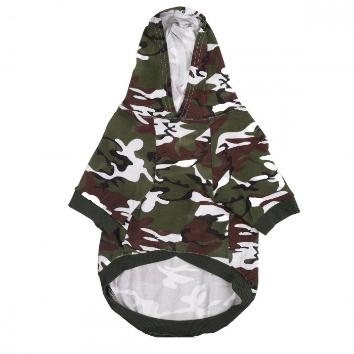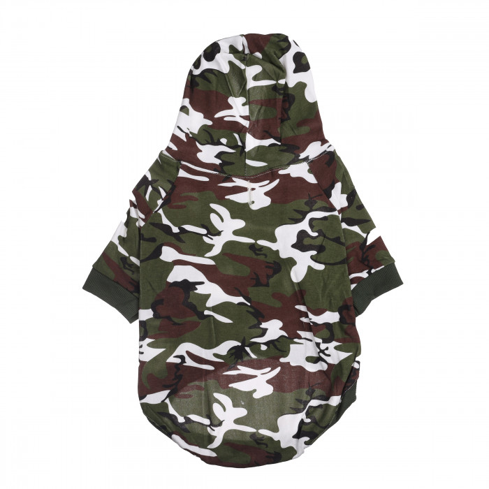 Худі для собак - це ідеальний вибір для стильних господарів, які хочуть одягнути свого улюбленця модно і комфортно. Кофточка виконана з високоякісних матеріалів, які не потребують складного догляду і зберігають свій вигляд. Худі має сучасний камуфляжний дизайн і капюшон, який захистить голову вашого улюбленця від дощу та вітру. Її можна носити як самостійний елемент, так і поєднувати з курткою або жилеткою в холодну пору року. Ця кофтинка легко поєднується з різними стильними аксесуарами та допоможе вашому улюбленцю і вам виглядати як справжня команда.