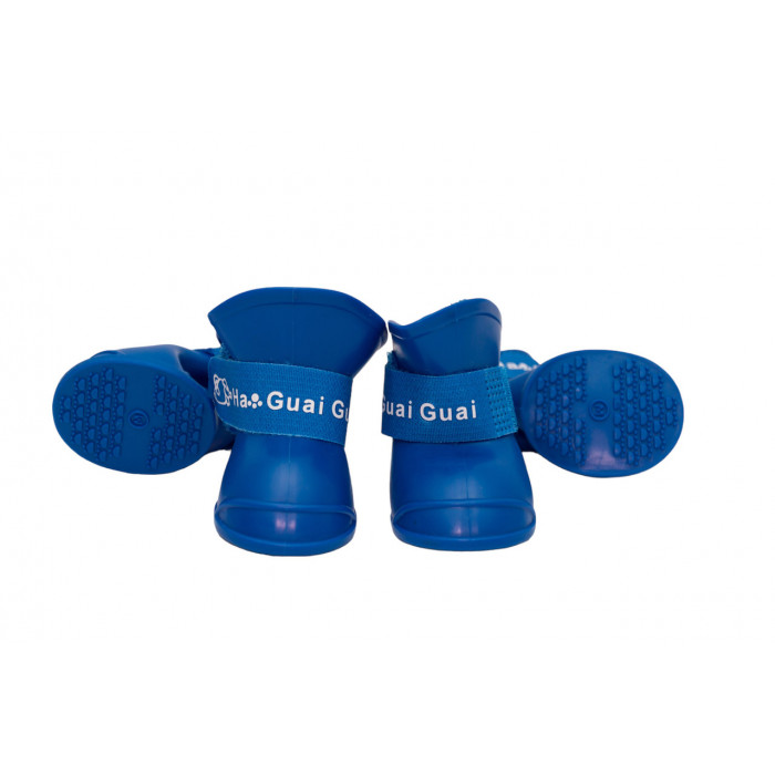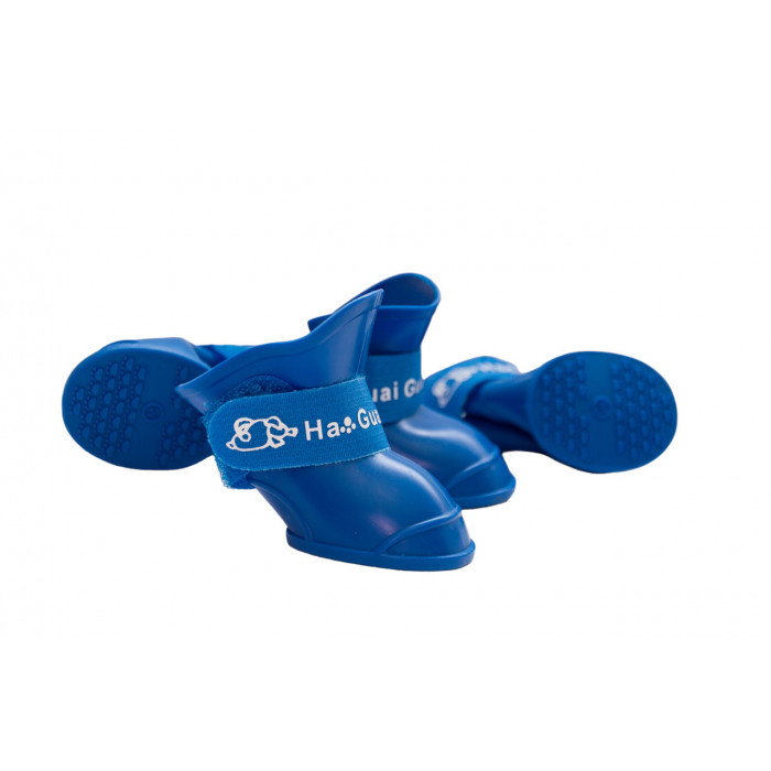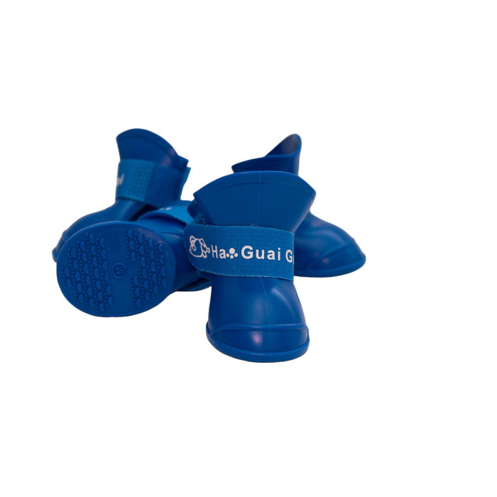 Гумові чоботи для собак чудово підійдуть для захисту лап вашого улюбленця від холоду і води. Важливо правильно піклуватися про здоров'я свого улюбленця, і взуття для собаки в дощову погоду є обов'язковим атрибутом. Дизайн черевиків виконаний у синьому кольорі зі зручною застібкою. Завдяки добре продуманому пошиттю, чоботи легко поєднуються як з дощовиком у вигляді плаща, так і з дощовиком-комбінезоном. Матеріал, з якого виготовлені чоботи, міцний, що дасть змогу надовго забути про купівлю нової пари взуття для прогулянок під дощем.