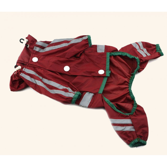 Світловідбивний комбінезон-дощовик, який захистить вашого улюбленця від опадів і вітру, забезпечуючи зручність і затишок під час прогулянок. Дизайн костюма виконаний в червоному кольорі з сірими світловідбиваючими смужками, які дають змогу бачити вашого улюбленця навіть у темний час доби. Костюм зручний як для тварини, так і для господаря завдяки застібкам на животі. Виготовлений з якісних тканин, цей комбінезон приємний до тіла, не вибагливий у догляді та прослужить вам тривалий час.