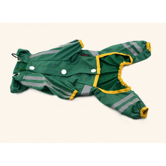 Комбінезон-дощовик для собак. Захистіть свого улюбленця від дощу та вітру за допомогою стильного дощовика-комбінезона для собак з капюшоном! Цей комбінезон створений для забезпечення максимального комфорту і захисту вашої собаки в будь-яку негоду. Виконаний у зеленому кольорі, він стане яскравим акцентом на прогулянці. Дощовик оснащений зручною застібкою на кнопках, що дає змогу швидко і легко надягати і знімати його. Резинка-фіксатор забезпечує надійну посадку по фігурі вашого пухнастого друга, не сковуючи його рухів. Капюшон додає додатковий захист для голови та вух, зберігаючи вашого улюбленця сухим і задоволеним навіть у найсильніший дощ. Цей дощовик-комбінезон - ідеальний вибір для дбайливих господарів, які хочуть, щоб їхні улюбленці завжди почувалися затишно та мали стильний вигляд у будь-яку погоду!