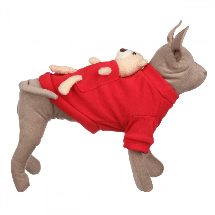 Демісезонний светр для котів та кішок із ведмедем у кишені, червоний, розмір XS