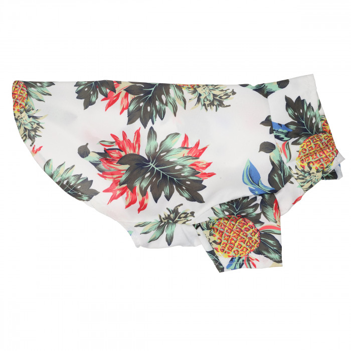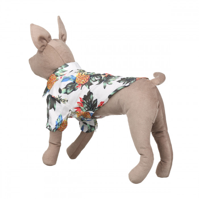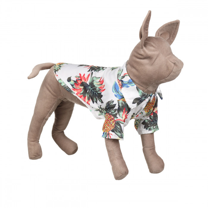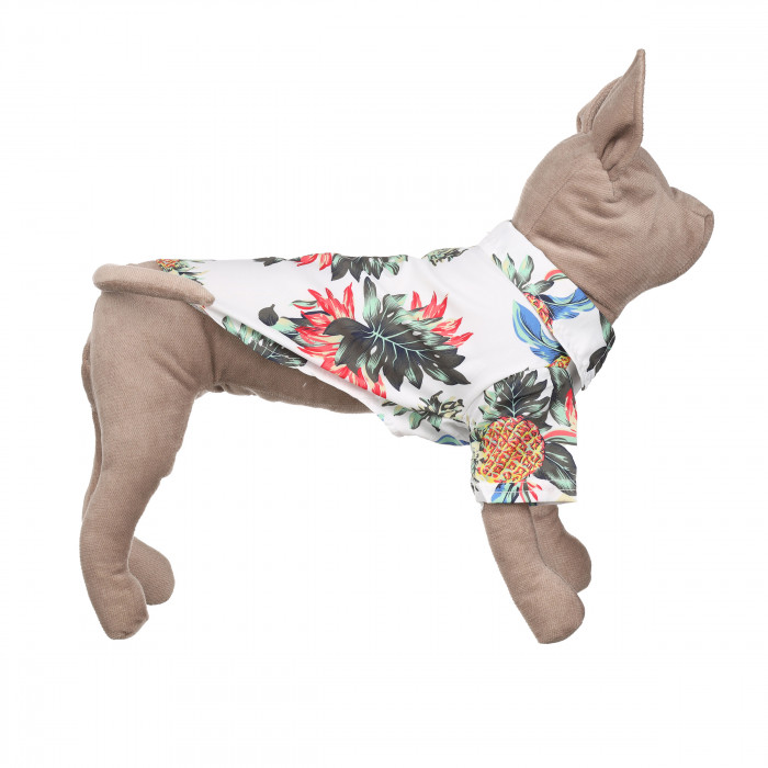 Виготовлена з еластичних високоякісних тканин, які не вибагливі у догляді та приємні на дотик. Застібки забезпечують зручне надягання і зняття без зайвих проблем і дискомфорту. Сорочка не псує шерсть тварини та не викликає алергічних реакцій і подразнень. Сорочка додасть образу улюбленця стильний і сучасний вигляд. Гавайська сорочка для котів у білому кольорі з принтом. Ідеальна для відпочинку, фотосесій і подорожей