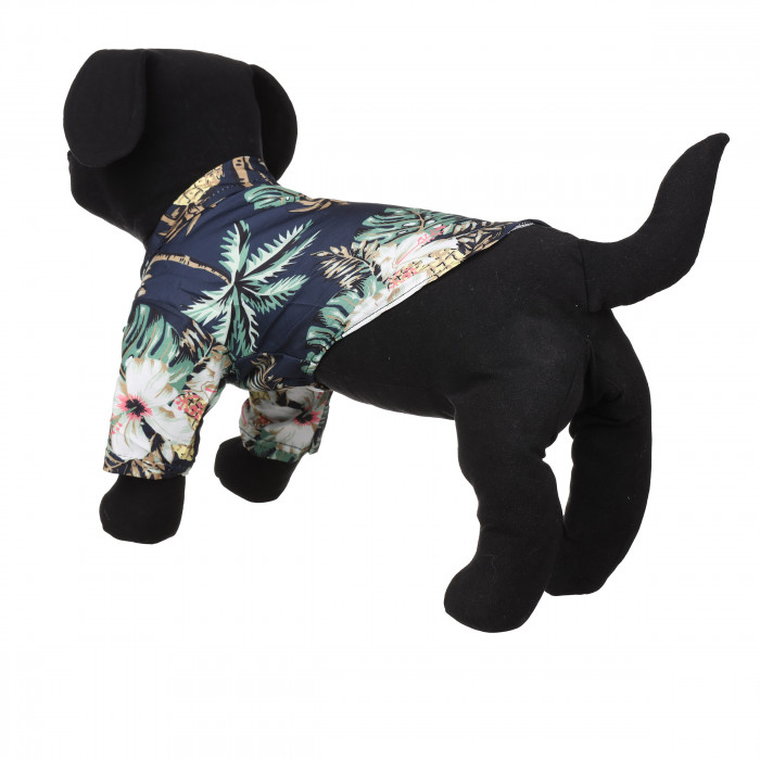 Гавайська сорочка для собак у чорному кольорі з яскравими принтами. Це зручний і стильний образ для відпочинку на морі або для фотосесій на узбережжі моря. Дана позиція одягу доступна у всіх розмірах, тому ви з легкістю знайдете потрібний для вашого улюбленця. Сорочка має якісне пошиття та виготовлена з високоякісних тканин, які не вибагливі у догляді та не втрачають колір після декількох прань. Також сорочка має кнопки-застібки, які зручно використовувати. Завдяки цьому річ легко одягати та знімати без зайвих проблем.