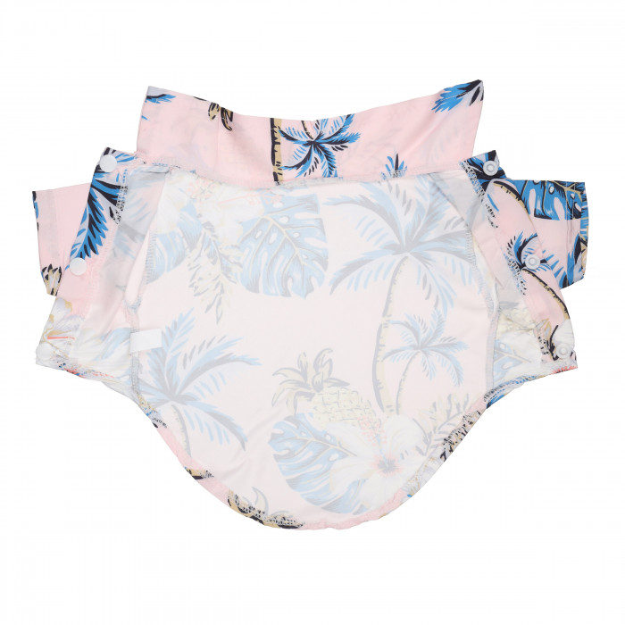 Гавайська сорочка для собак стане відмінним доповненням до гардеробу вашого улюбленця. Таку річ можна одягнути для відпочинку на морі, подорожей і фотосесій. Сорочка щільно прилягає до тіла тварини і не сковує її рухи. Для комфорту тварини важливо правильно підібрати розмір. Дизайн сорочки виконаний у рожевому кольорі з візерунком пальм. Річ має зручні застібки, завдяки яким аксесуар зручно надягати та знімати, не викликаючи дискомфорту у тварини.