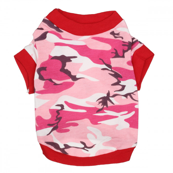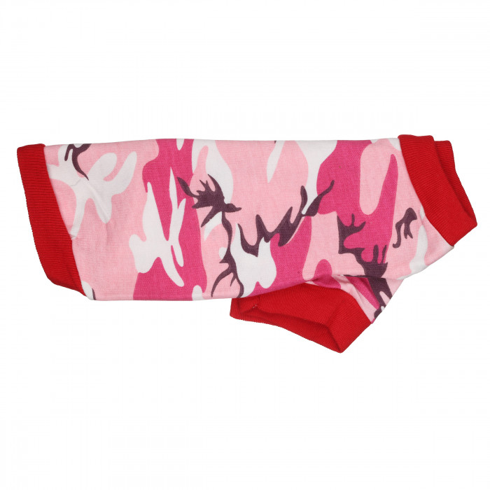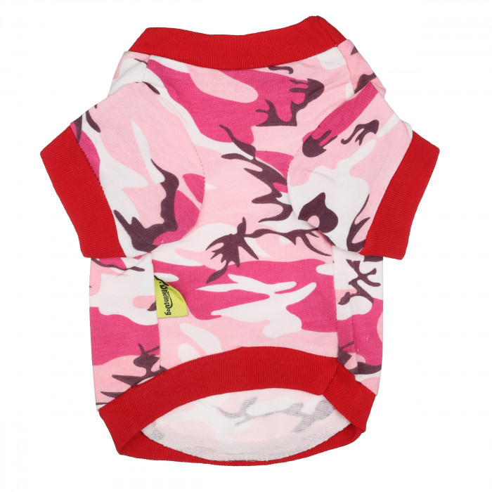 Футболка для котів у військовому стилі камуфляж у рожевому кольорі. Вона зшита з високоякісних тканин, що гарантує довговічність речі та комфорт для вашого улюбленця. Цей аксесуар додасть сучасного вигляду вашому улюбленцю і підкреслить його характер та індивідуальність, привертаючи увагу оточуючих.Футболка забезпечує захист від палючих сонячних променів і має хорошу посадку на тілі тварини