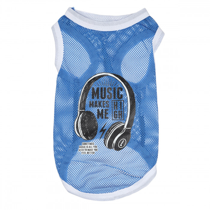 Літня тонка сітчаста майка для котів та кішок "Music", синя, розмір M