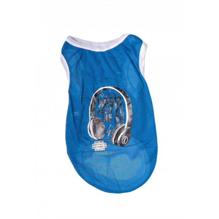 Літня тонка сітчаста майка для котів та кішок "Music", синя, розмір XL