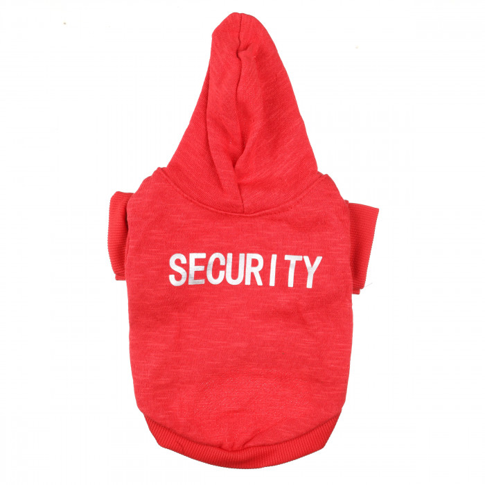 "Подаруйте своєму пухнастому другові відчуття турботи та безпеки з червоним худі "Security"!. Підходить для котів різних порід і розмірів, це худі стане чудовим вибором для дбайливих господарів, які хочуть підкреслити індивідуальність свого улюбленця і подбати про його комфорт. Легкий і міцний капюшон захистить від вітру та негоди, зберігаючи вашого чотирилапого друга в теплі та затишку.Будьте впевнені, що ваш улюбленець матиме стильний вигляд і почуватиметься комфортно в худі "Security". Дизайн "Security" з виразним принтом підкреслить індивідуальність вашого улюбленця та приверне увагу на будь-якій прогулянці.Виготовлене з високоякісного, м'якого і дихаючого матеріалу, худі забезпечує комфорт і свободу рухів, не сковуючи активних котів. Представляємо вашій увазі стильне і зручне худі для котів "Security" в червоному кольорі! Це тонке худі ідеально підходить для активних прогулянок і домашніх посиденьок, додаючи вашому улюбленцю нотку модного шику та впевненості. Еластичні манжети та зручна посадка забезпечують додаткове тепло в прохолодні дні"