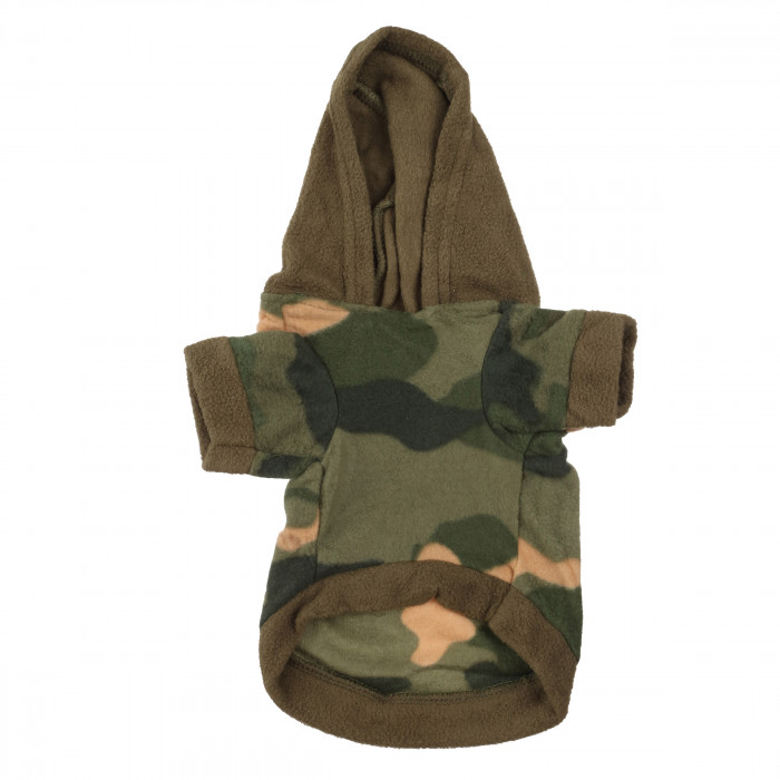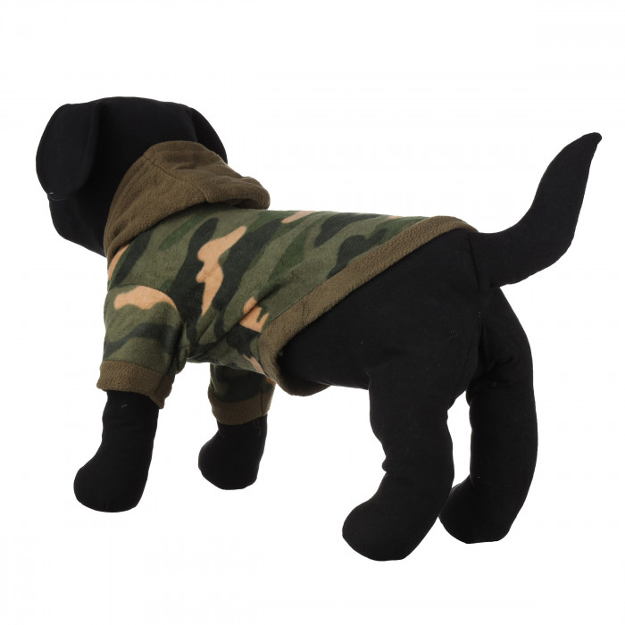 Худі для собак у стилі камуфляж. Ця модель підкреслить характер і стиль тварини, а також її індивідуальність і додасть естетичного вигляду образу вашого улюбленця. Худі має капюшон, який захистить вуха вашого улюбленця від вітру. Худі виготовлено з високоякісних тканин, які приємні до тіла та не вибагливі у догляді. Тому таку річ можна одягати на щоденні прогулянки парком або просто для домашнього використання. Важливо правильно підібрати розмір для тварини, щоб вона почувалася комфортно і вільно.