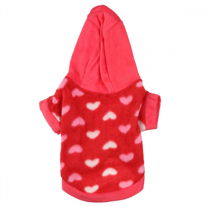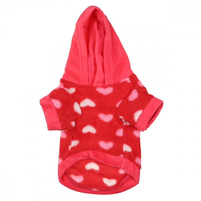 Тепле худі для собак у рожевому кольорі з візерунками сердечок - відмінний вибір для щоденних прогулянок навесні, коли світить сонце, але ще недостатньо тепло. Худі виготовлено з якісних еластичних матеріалів, які не потребують складного догляду і зберігають початковий вигляд після декількох прань. Це худі захистить вашого улюбленця від протягів і холоду під час прогулянок, а також відмінно підійде для домашнього використання.