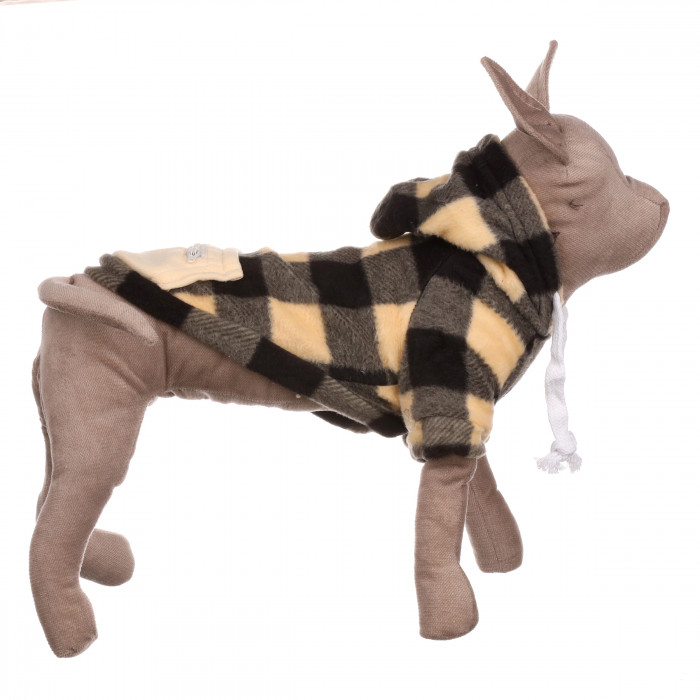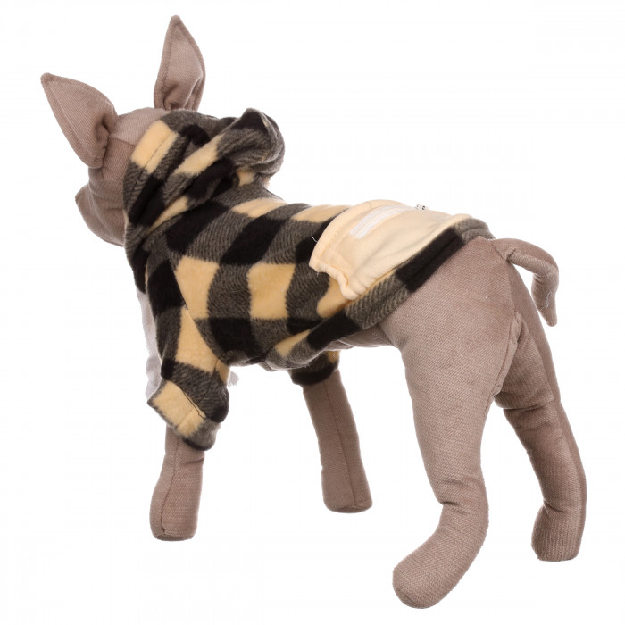 Осінній худі на флісі для котів та кішок з кишенею на блискавці "Sausage" Чорно-бежева клітинка, розмір 4XL