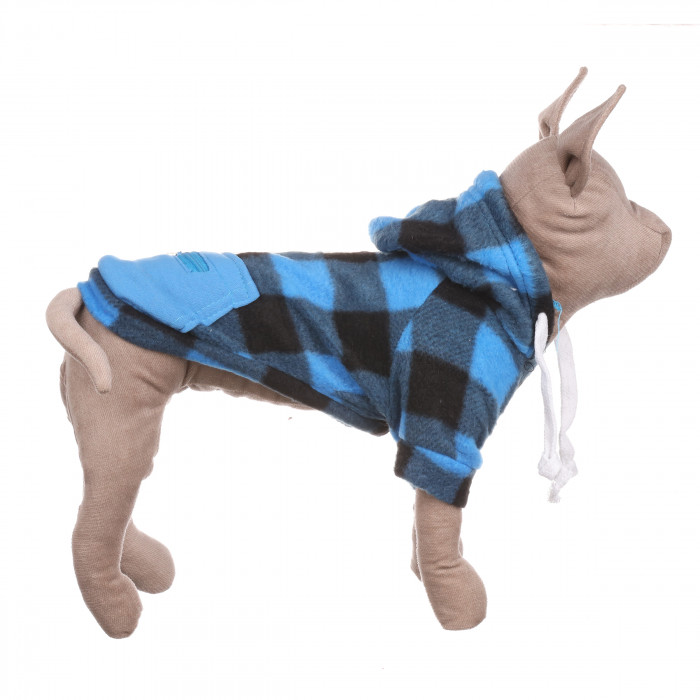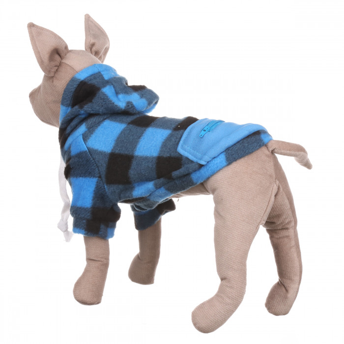 Осінній худі на флісі для котів та кішок з кишенею на блискавці "Sausage" Чорно-синя клітинка, розмір S