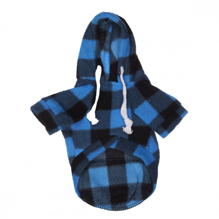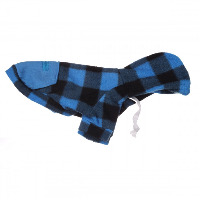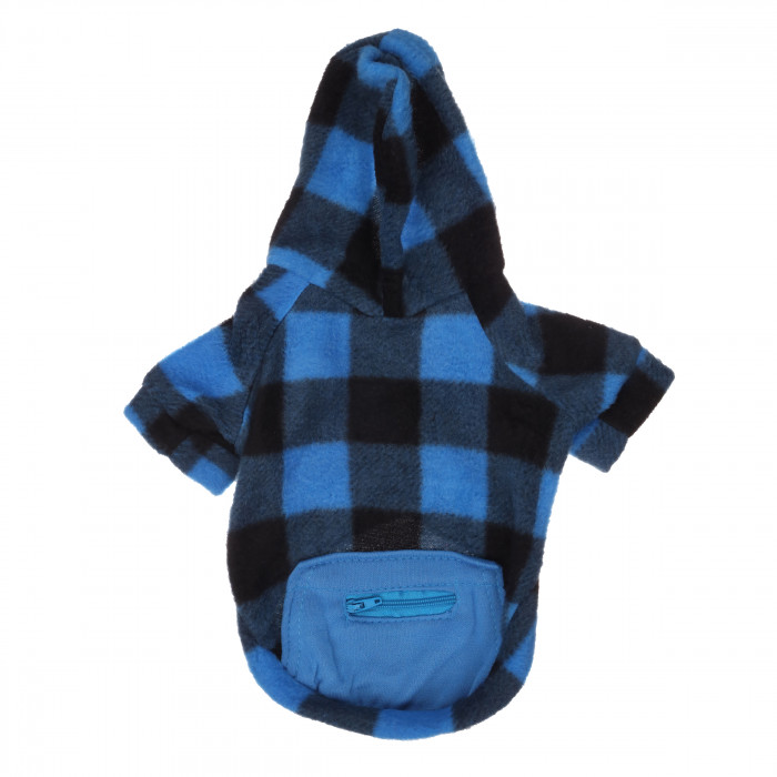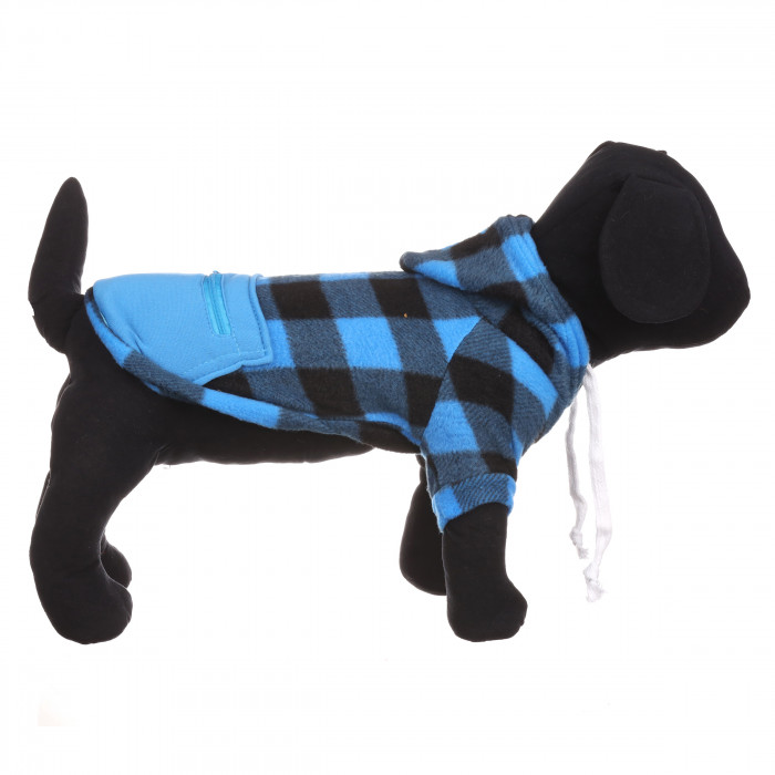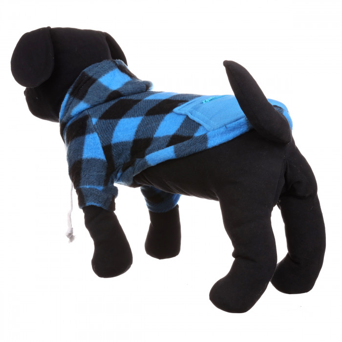 Осінній худі на флісі для собак з кишенею на блискавці "Sausage" Чорно-синя клітинка, розмір 2XL