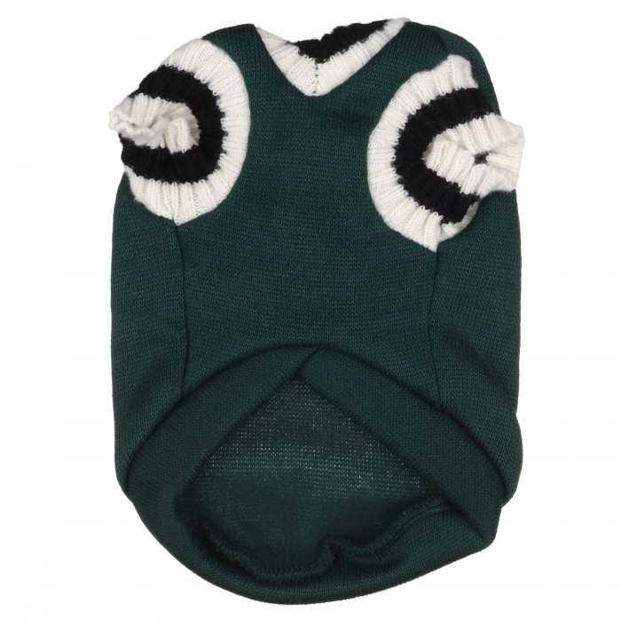 Якщо розмір підібрано правильно, жилет буде щільно прилягати до тіла тварини, але не сковуватиме її рухи та дихання. Дизайн даного аксесуара виконаний в однотонному кольорі, тому його можна комбінувати з іншими аксесуарами і створювати повноцінний образ. Жилет підійде для прогулянок і домашнього використання, а також для особливих моментів, таких як фотосесії. Жилет виготовлений з гіпоалергенних тканин, які не викликають подразнення і не натирають шкіру. Важливо правильно підібрати розмір. Класичний жилет для котів у зеленому кольорі з білими манжетами
