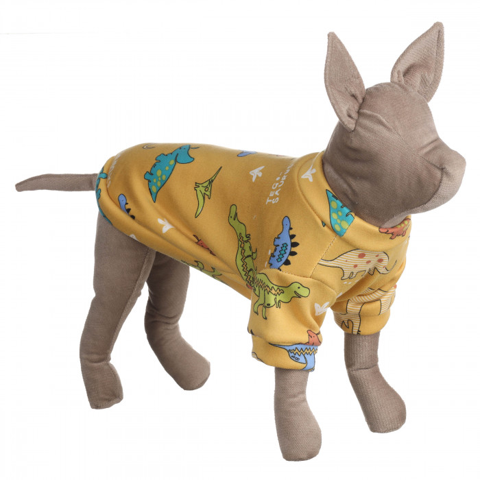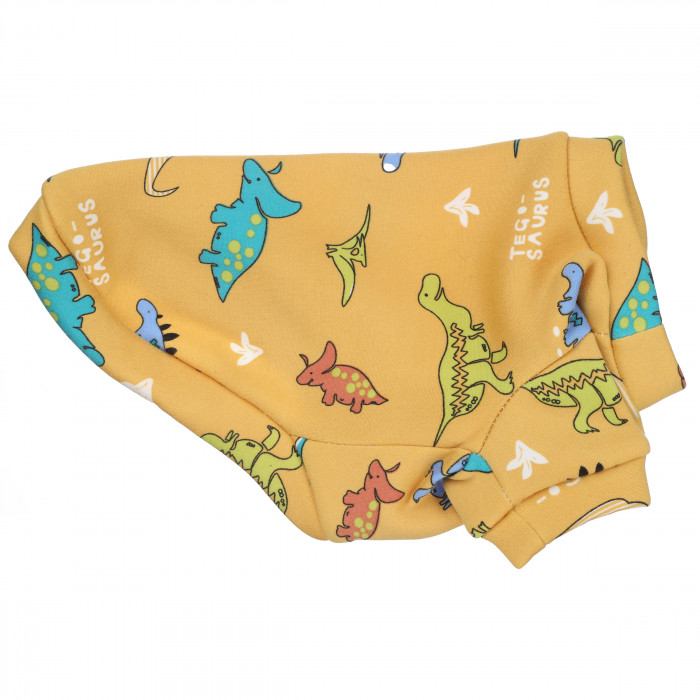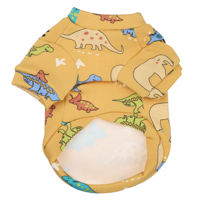 Така річ підкреслить стиль та індивідуальність вашого улюбленця. Футболка для котів це зручний одяг для прогулянок, святкових заходів, домашнього використання. Також футболку можна одягати під верхній одяг.Футболка виготовлена з якісних матеріалів, які не вибагливі у догляді та не втрачають кольору після декількох прань, її сміливо можна одягати на щоденні прогулянки.Дизайн футболки виконаний у жовтому кольорі з малюнками динозаврів