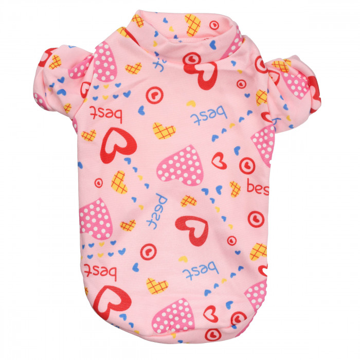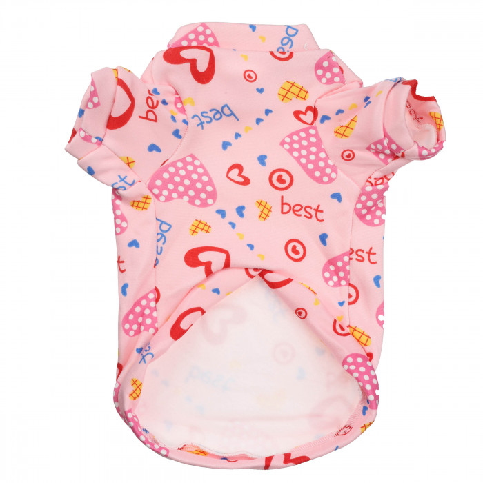 Тепла футболка для собак у рожевому кольорі. Такий образ підкреслить індивідуальний характер і стиль вашого улюбленця.Хочете створити романтичний і ніжний образ для своєї улюблениці, тоді саме ця футболка вам потрібна.Виготовлена з високоякісних матеріалів вона приємна на дотик і не відчувається на тілі тварини. Рожевий колір із принтами сердечок приверне увагу всіх перехожих під час прогулянки або урочистих подій. Завдяки утепленій підкладці собака почуватиметься в нашій футболці не тільки легко та вільно, а й тепло.
