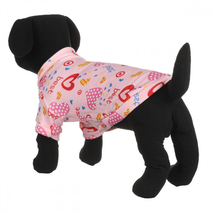 Тепла футболка для собак у рожевому кольорі. Такий образ підкреслить індивідуальний характер і стиль вашого улюбленця.Хочете створити романтичний та ніжний образ для своєї улюблениці, тоді саме ця футболка вам потрібна.Виготовлена з високоякісних матеріалів вона приємна на дотик і не відчувається на тілі тварини. Рожевий колір із принтами сердечок приверне увагу всіх перехожих під час прогулянки або урочистих подій. Завдяки утепленій підкладці собака почуватиметься в нашій футболці не тільки легко та вільно, а й тепло.