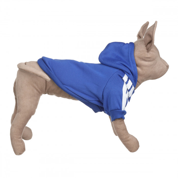 Толстовка забезпечить тепло і зручність у холодну пору року. Дизайн толстовки виконаний в однотонному синьому кольорі. Також толстовка має капюшон, який забезпечить захист для голови тварини під час вітряної прогулянки. Толстовку можна надягати на прогулянку, також це хороший варіант для домашнього використання. А також цей аксесуар додасть стиль до образу вашого улюбленця. Толстовка виготовлена з якісних тканин, які не вибагливі в догляді і не втрачають колір після декількох прань.