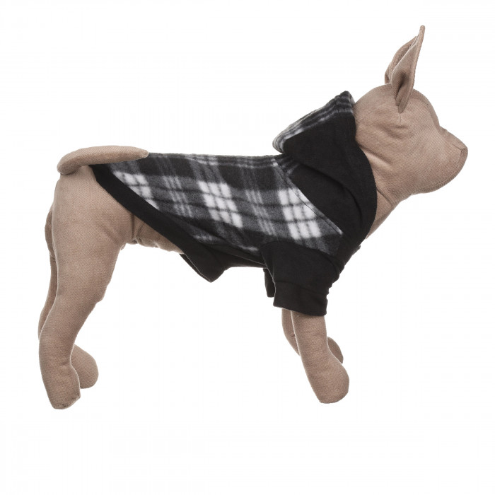 Худі такого плану чудово захистить вашого улюбленця від холоду та вітру, забезпечивши комфорт під час прогулянки. Дизайн виконаний у чорно-білу клітинку. Тепле флісове худі для котів стане чудовим і корисним доповненням до гардеробу вашого улюбленця. Це робить худі зручним і комфортним. Виготовлено з еластичних матеріалів, які добре тягнуться, щільно прилягають до тіла, але не сковують рухи.