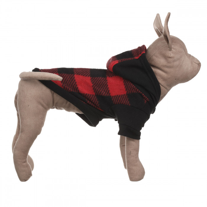 А також худі має капюшон, який захистить вуха вашого улюбленця від вітру. Утеплений худі для котів з капюшоном у велику клітинку. Такий варіант одягу добре підійде для щоденних прогулянок та особливих моментів. Тому худі з таким дизайном можна комбінувати з іншими кольоровими деталями та робити образ ще більш вишуканим. Худі виготовлене з теплих флісових тканин, тому ця кофта чудово захистить вашого улюбленця від холоду та вітру. Дизайн кофти виконаний у червоно-чорному кольорі в клітинку - це сучасна комбінація кольорів