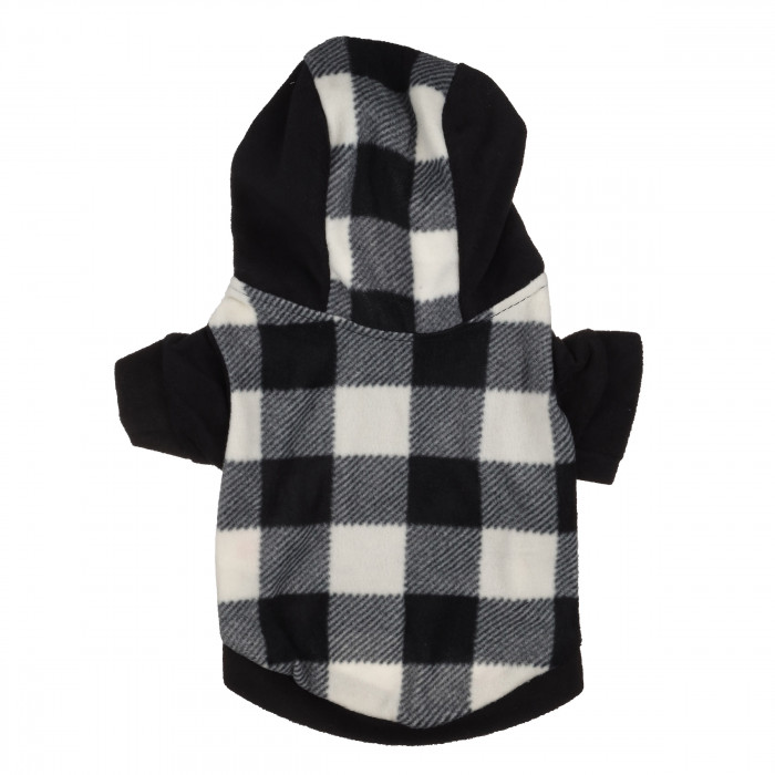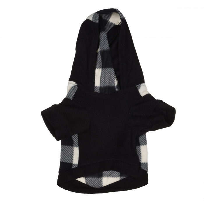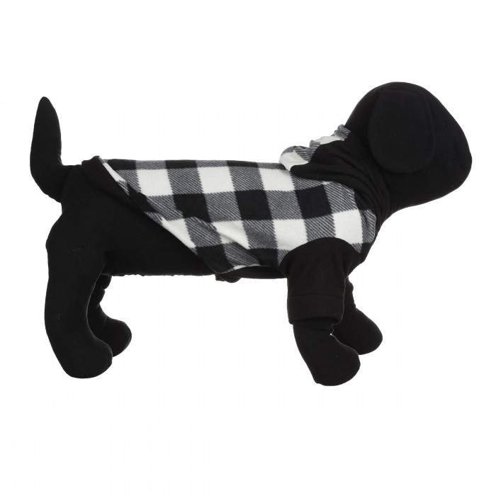 Осінньо-весняне тепле худі для собак з капюшоном на флісі "Велика клітинка", чорне, розмір S