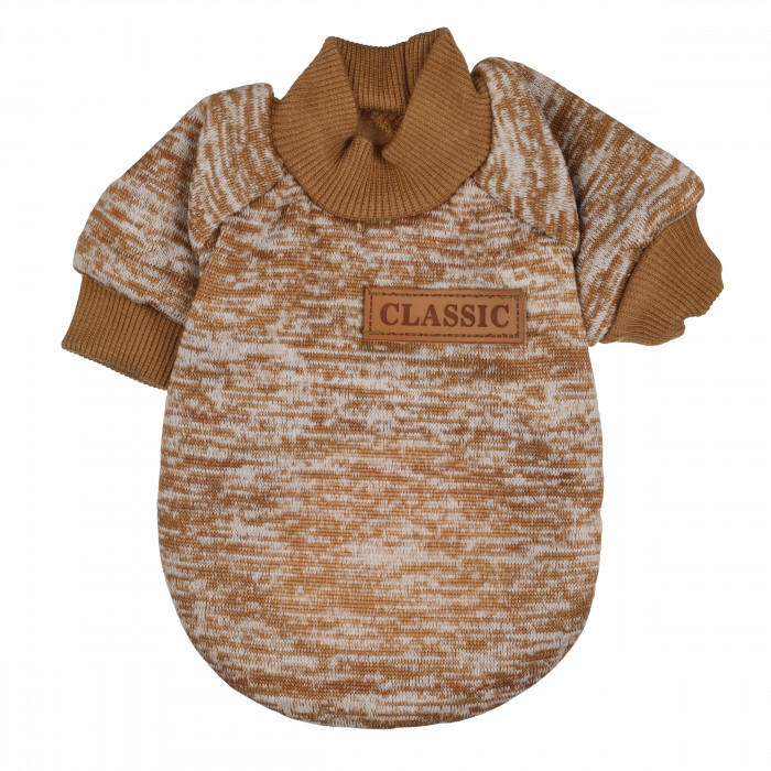 Джемпер має щільну посадку на тілі тварини завдяки еластичним матеріалам, які прилягають до тіла, забезпечуючи комфорт і свободу рухів. Джемпер для котів - це стильний і практичний одяг для щоденних прогулянок просто неба та святкових заходів. Дизайн цього аксесуара виконаний в однотонному коричневому кольорі, що дає змогу комбінувати його з іншими кольоровими деталями та доповнювати образ тварини, а також поєднувати з образом господаря.