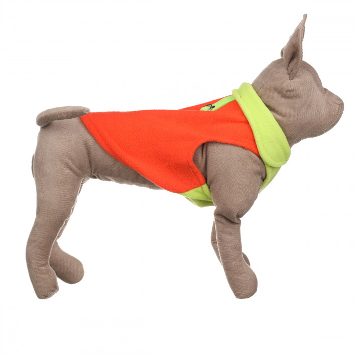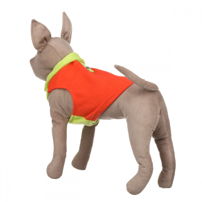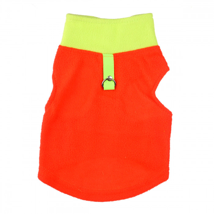 Жилетку можна комбінувати з іншими кольоровими деталями, створюючи більш стильний образ тварини. Річ має кільце для повідця, що забезпечить зручність для господаря, спрощуючи щоденні прогулянки з улюбленцем. Також тварина в жилетці почуватиметься комфортно та затишно. Жилетка для котів помаранчевого кольору з жовтим комірцем