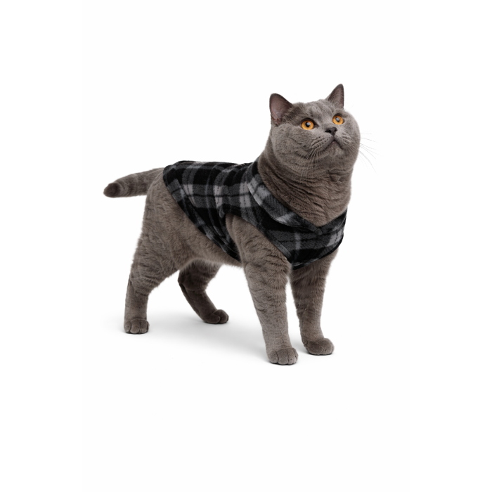 Осінньо-весняний жилет для котів та кішок з кільцем "Клітинка", чорний, розмір S