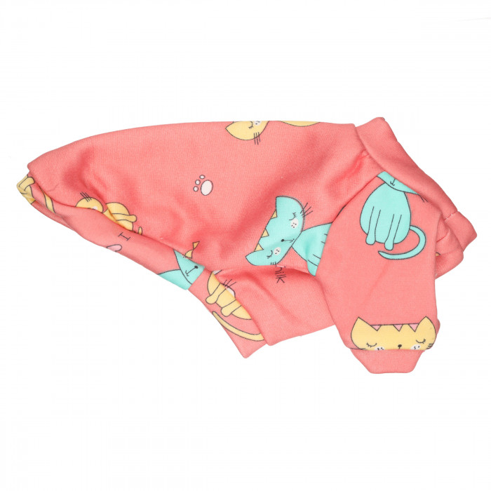 Він забезпечить вашому улюбленцю комфорт і затишок. Виготовлений із високоякісних матеріалів, пуловер приємно прилягає до тіла та має щільну посадку завдяки еластичності тканини. Пуловер для котів - це зручний і практичний одяг, що ідеально підходить для прогулянок на свіжому повітрі та домашнього використання. Дизайн виконаний в рожевому кольорі з принтом різнокольорових кошенят, додаючи яскраву і милу родзинку в повсякденне життя вашого улюбленця.