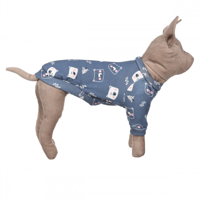 Дизайн виконаний у синьому кольорі з візерунками маленьких ведмежат. Пуловер виготовлений із високоякісних тканин, які приємні до тіла та забезпечують відмінну терморегуляцію. У повсякденному житті важливо правильно захистити тварину від холоду під час прогулянок за низьких температур, і наш пуловер стане ідеальним рішенням. Пуловер для котів у сучасному і стильному дизайні. Він невибагливий у догляді та зберігає колір навіть після багаторазового прання.