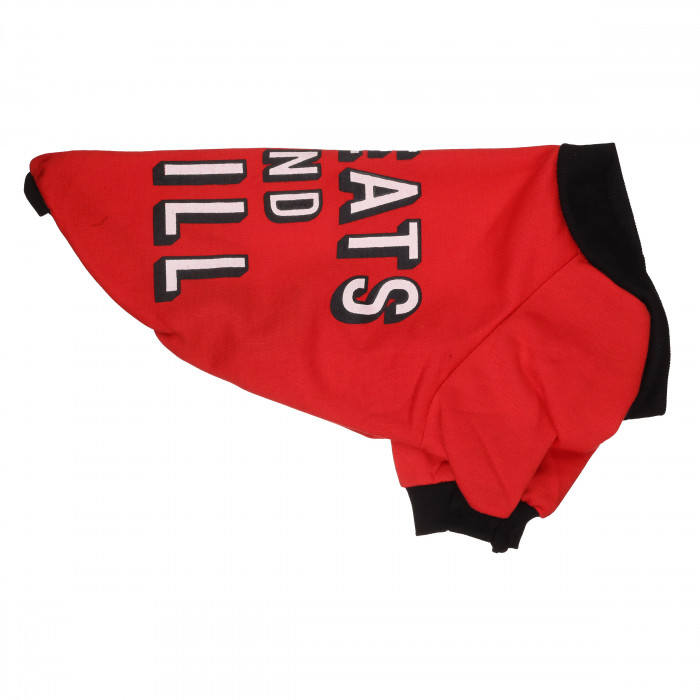 Свитшот для собак в красном цвете с черными манжетами. Эластичные манжеты обеспечат хорошую фиксацию на лапах животного, обеспечив хорошую посадку на теле животного. Свитшот имеет хороший качественный пошив, а также изготовлен из качественных материалов, которые приятны на ощупь. Такой свитшот обеспечит удобство и уют в прохладные прогулки. Свитшот можно надевать на особые моменты и ежедневные прогулки.