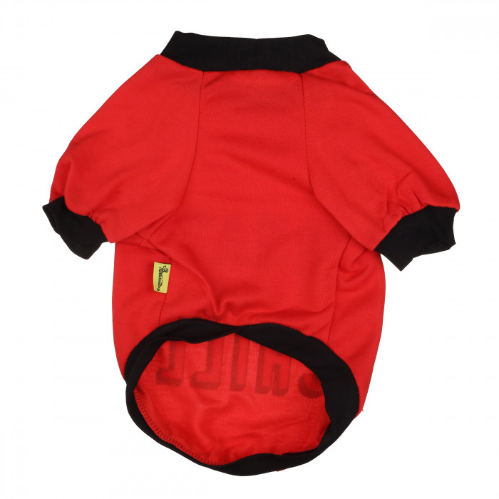 Свитшот для собак в красном цвете с черными манжетами. Эластичные манжеты обеспечат хорошую фиксацию на лапах животного, обеспечив хорошую посадку на теле животного. Свитшот имеет хороший качественный пошив, а также изготовлен из качественных материалов, которые приятны на ощупь. Такой свитшот обеспечит удобство и уют в прохладные прогулки. Свитшот можно надевать на особые моменты и ежедневные прогулки.
