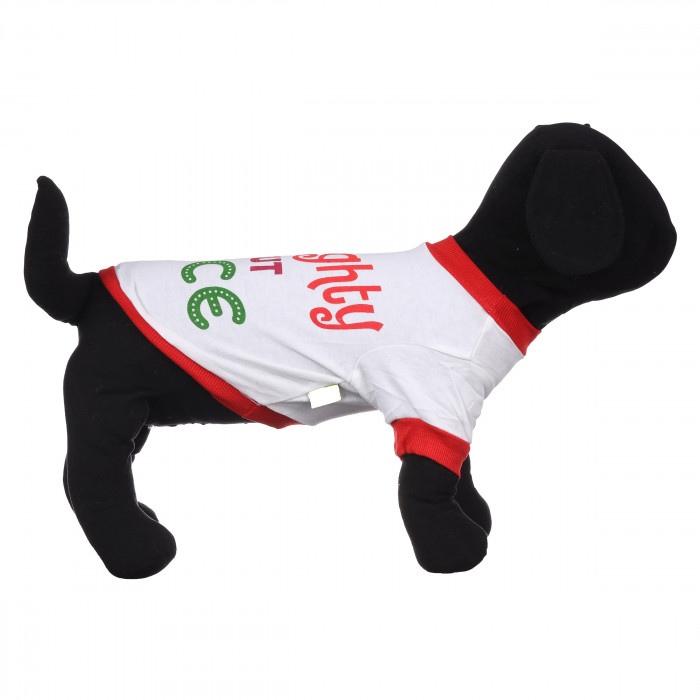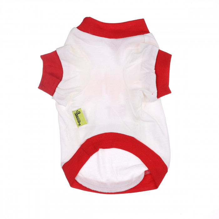Свитшот для собак, сочетающий в себе удобство и стильный внешний вид. Выполнен в белом цвете с красными манжетами и интересным принтом. Изготовлен из высококачественных материалов, приятных к телу и обладающих хорошей терморегуляцией, обеспечивающих тепло животному. Свитшот имеет плотную посадку на теле, не пережимает и не сковывает движения. Важно правильно измерить параметры собаки для идеальной посадки.