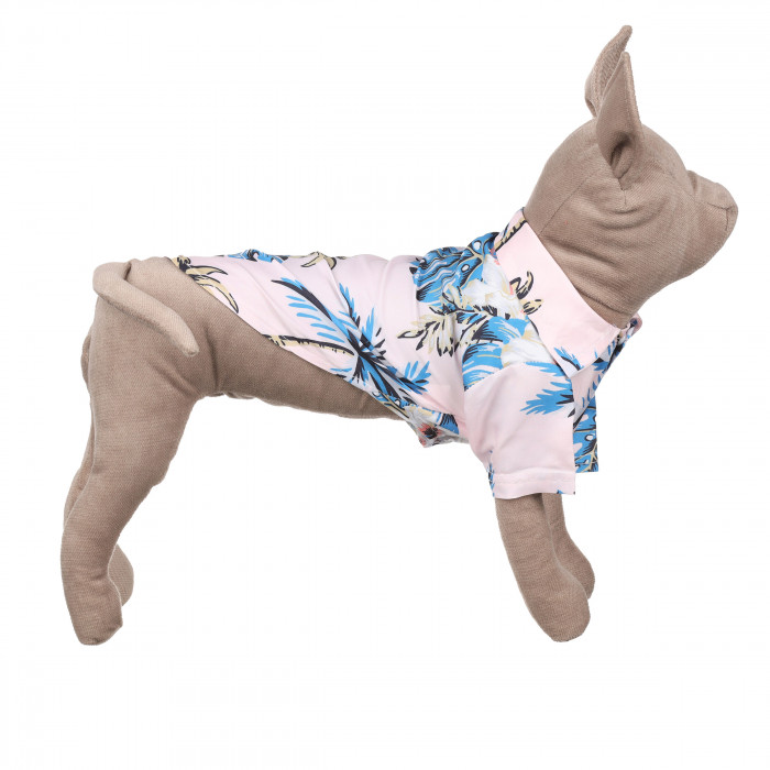 Дизайн рубашки выполнен в розовом цвете с узором пальм. Гавайская рубашка для котов станет отличным дополнением к гардеробу вашего любимца. Для комфорта животного важно правильно подобрать размер. Такую вещь можно одеть для отдыха на море, путешествий и фотосессий. Вещь имеет удобные застежки, благодаря которым аксессуар удобно надевать и снимать, не вызывая дискомфорта у животного. Рубашка плотно прилегает к телу животного и не сковывает его движения