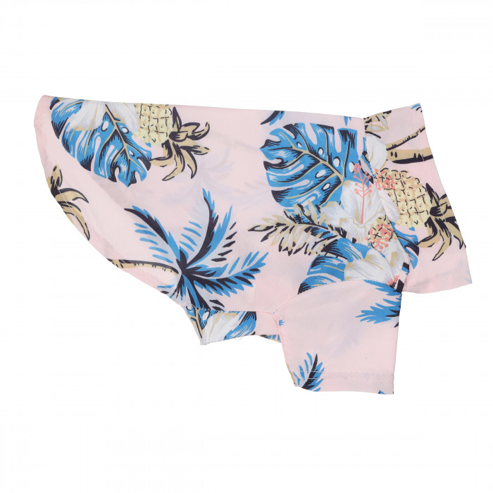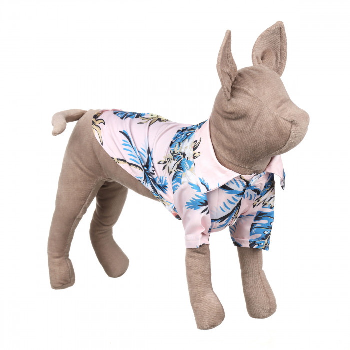 Дизайн рубашки выполнен в розовом цвете с узором пальм. Для комфорта животного важно правильно подобрать размер. Такую вещь можно одеть для отдыха на море, путешествий и фотосессий. Гавайская рубашка для котов станет отличным дополнением к гардеробу вашего любимца. Рубашка плотно прилегает к телу животного и не сковывает его движения. Вещь имеет удобные застежки, благодаря которым аксессуар удобно надевать и снимать, не вызывая дискомфорта у животного.