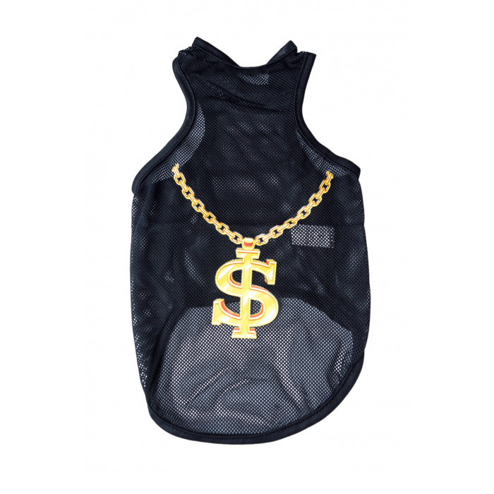 Летняя сетчатая майка для котов и кошек и котов "Золотая цепочка", черная, размер M