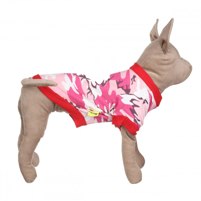 Футболка для собак в военном стиле камуфляж в розовом цвете. Этот аксессуар придаст современный вид вашему любимцу и подчеркнет его характер и индивидуальность, привлекая внимание окружающих.Футболка обеспечивает защиту от палящих солнечных лучей и имеет хорошую посадку на теле животного. Она сшита из высококачественных тканей, что гарантирует долговечность вещи и комфорт для вашего питомца.