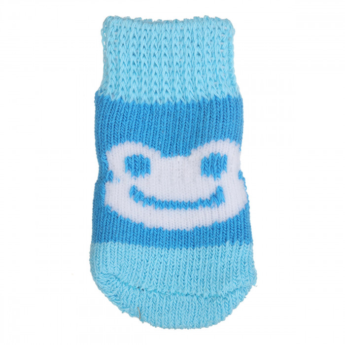Носки имеют плотную посадку на лапах животного, но не пережимают лапы и не вызывают дискомфорта у животного. Носки изготовлены из высококачественных хлопковых материалов, которые не требовательны в уходе и не теряют цвет после нескольких стирок. Носки для котов в голубом цвете с принтом лягушки. Носки для домашних животных хорошо тянутся. Состав: хлопок 80%, спандекс 15%, полиэстер 5%. Размер можно подобрать как для маленькой собачки 2, так и для собачек больших пород 4. Носки имеют подошву, которая не будет скользить по гладкой поверхности. Такой аксессуар можно надевать на ежедневные прогулки, праздничные мероприятия и домашнее использование