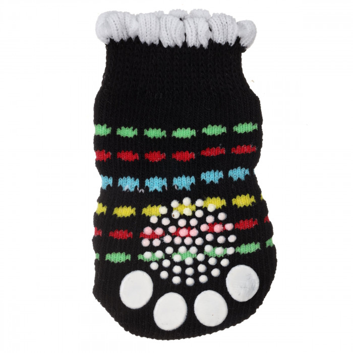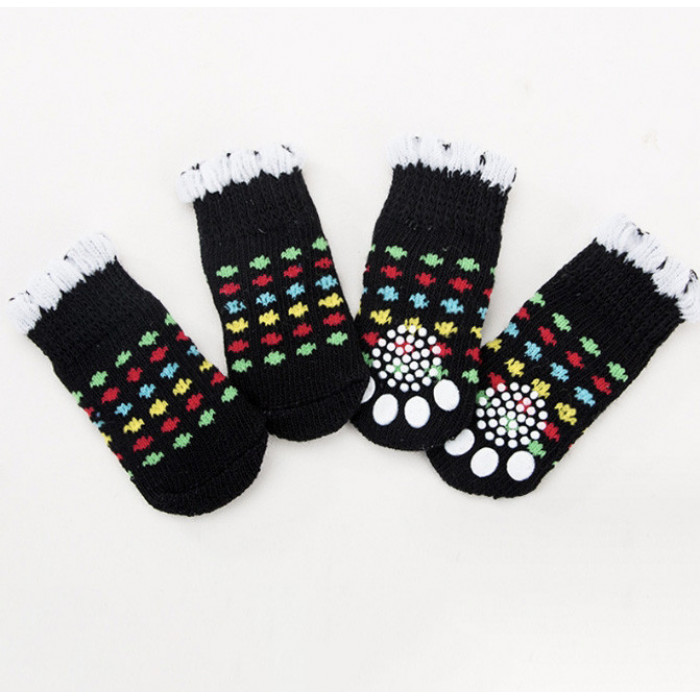 Носки для котов в черном цвете в горошек такие элементы одежды понадобятся во время прогулок и домашнего использования, чтобы защитить лапы животного от холода и мороза, а также от повреждений .Носки имеют хорошую подошву с силиконовой поверхностью, которая обеспечит качественное и удобное сцепление с поверхностью земли.Также носки можно комбинировать с основной одеждой и дополнять образ животного.Состав: хлопок 80%, спандекс 15%, полиэстер 5%.Размер можно подобрать как для маленькой собачки 2, так и для собачек больших пород 4. Носки для домашних животных хорошо тянутся.