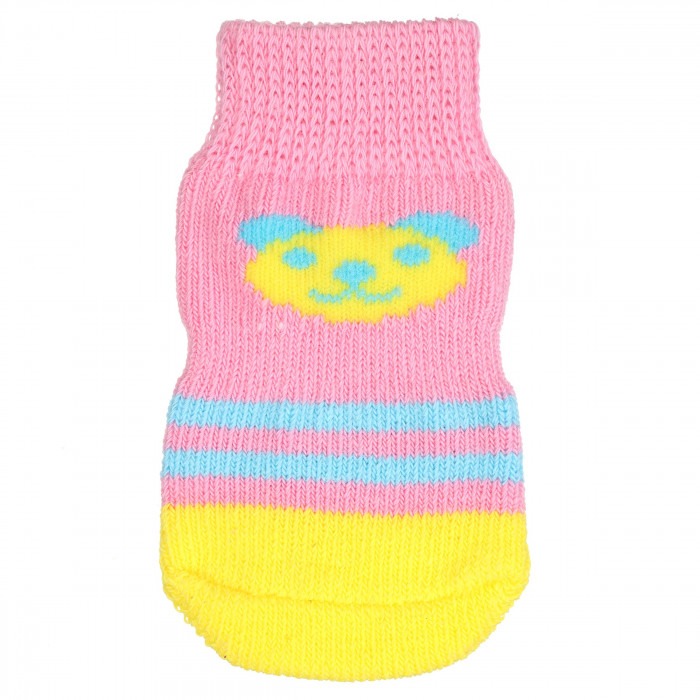 Носки с антискольжением для котов и кошек (4 шт) хлопок "Медведи", розовые, размер 2