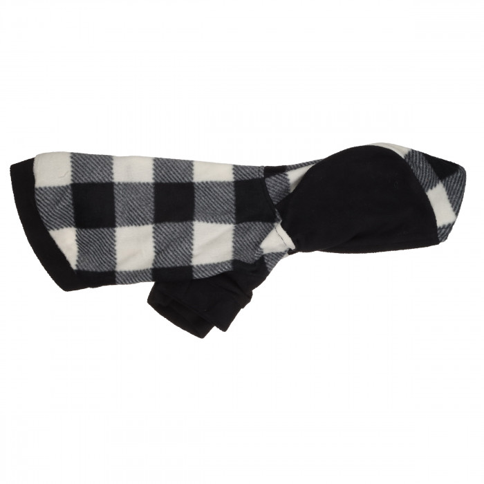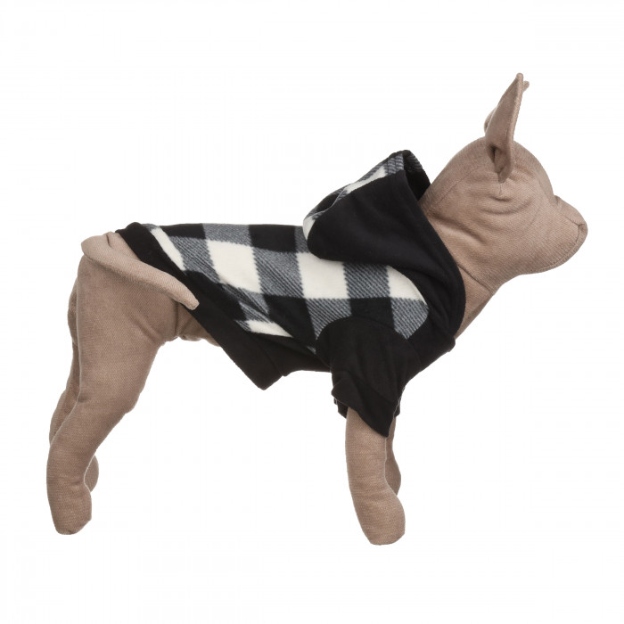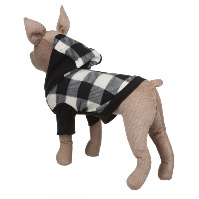 Осеннее-весеннее теплое худи для котов и кошек с капюшоном на флисе "Крупная клетка", черное, размер S