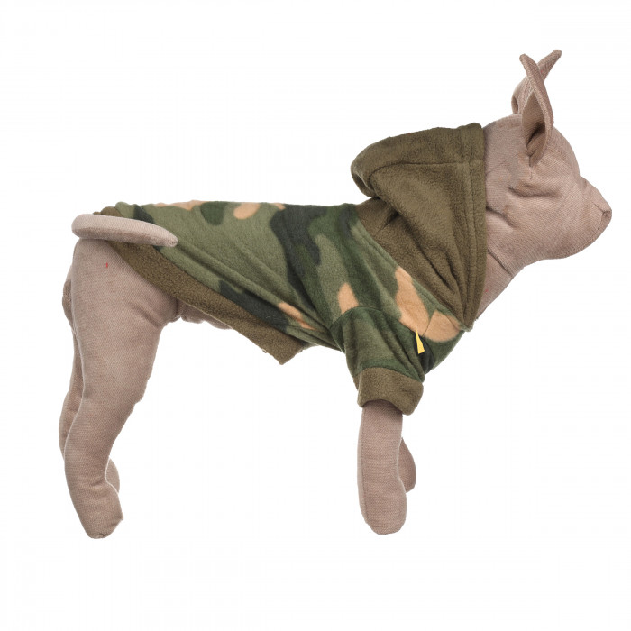 Худи имеет капюшон, который защитит уши вашего любимца от ветра. Худи для котов в стиле камуфляж. Поэтому такую вещь можно надевать на ежедневные прогулки по парку или просто для домашнего использования. Важно правильно подобрать размер для животного, чтобы оно чувствовало себя комфортно и свободно. Данная модель подчеркнет характер и стиль животного, а также его индивидуальность и придаст эстетический вид образу вашего любимца. Худи изготовлено из высококачественных тканей, которые приятны к телу и не требовательны в уходе