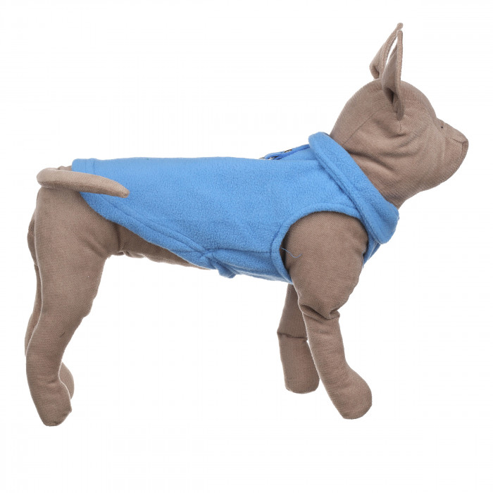 Ворот добавляет дополнительный уровень защиты, согревая шею в прохладные дни. Этот жилет сочетает в себе функциональность и эстетичность, обеспечивая вашему питомцу комфорт и защиту от холода. Кольцо для поводка, предусмотренное в дизайне жилета, делает его использование удобным и практичным – больше не нужно беспокоиться о дополнительных аксессуарах.Голубой цвет жилета подчеркивает элегантность и утонченность вашего питомца, выделяя его на фоне других котов. Подарите своему любимцу тепло, комфорт и непревзойденный стиль с этим замечательным флисовым жилетом!. Этот жилет легко комбинируется с различными элементами гардероба, позволяя создавать разнообразные стильные образы. Мягкий флисовый материал нежно обнимает тело вашего четвероногого друга, создавая ощущение уюта и тепла. Идеальный выбор для стильных прогулок в любую погоду. Высококачественный пошив и прочные материалы гарантируют долговечность изделия, а простой уход за флисом позволяет жилету сохранять яркость и форму даже после многочисленных стирок.Убедитесь, что вы правильно подобрали размер, чтобы жилет идеально сидел на вашем питомце, не сковывая его движения