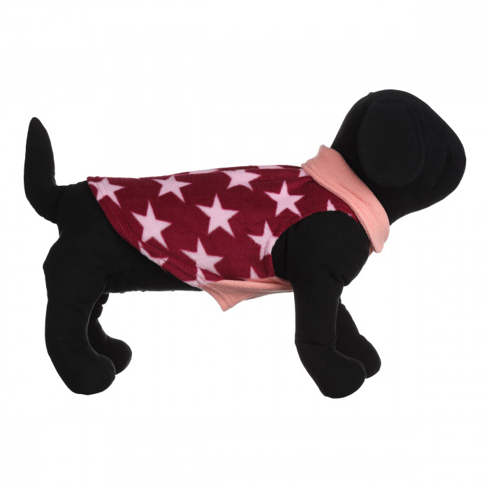 Жилетка для собак в бордовом цвете с розовыми звездочками и розовым воротником. Жилетка имеет кольцо, к которому крепится поводок для удобства животного и хозяина. Она изготовлена из высококачественных тканей, которые не требовательны в уходе и не теряют цвет после нескольких стирок, поэтому ее можно смело надевать на ежедневные прогулки. Жилетка имеет плотную посадку на теле животного и подчеркнет стиль и индивидуальность вашего любимца.