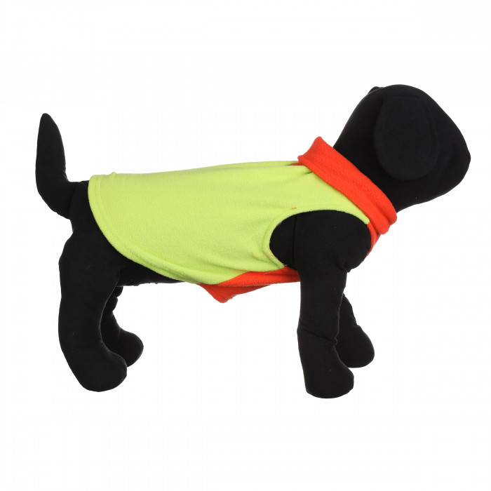 Жилетка для собак в желтом цвете с оранжевым воротником. Жилетка обеспечит удобство и комфорт для вашего питомца. Она изготовлена из высококачественных тканей, которые не требовательны в уходе и не теряют цвета после нескольких стирок, поэтому ее смело можно надевать на ежедневные прогулки. Жилетка подчеркнет стиль и характер животного, а также обеспечит удобное передвижение. Вещь имеет плотную посадку на теле животного благодаря эластичным материалам, из которых она изготовлена.