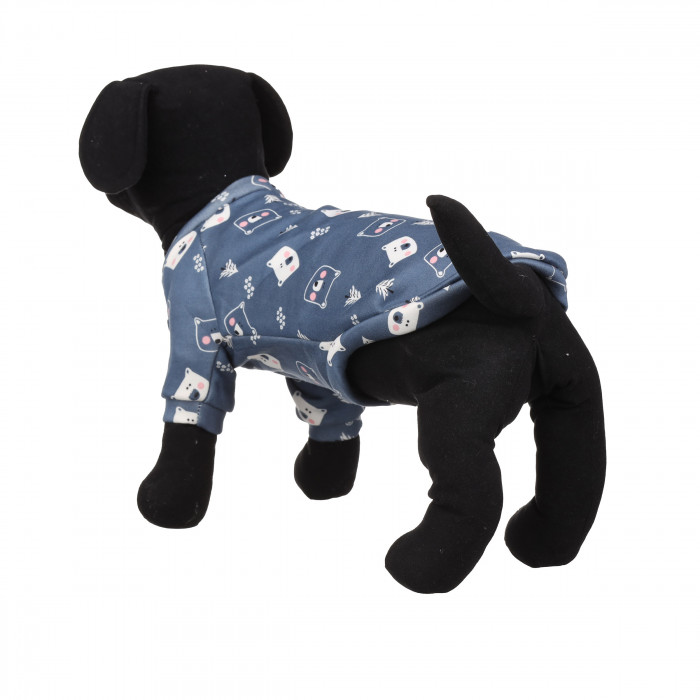 Пуловер для собак в современном и стильном дизайне. В повседневной жизни важно правильно защитить животное от холода во время прогулок при низких температурах, и наш пуловер станет идеальным решением. Дизайн выполнен в синем цвете с узорами маленьких медвежат. Пуловер изготовлен из высококачественных тканей, которые приятны к телу и обеспечивают отличную терморегуляцию. Он неприхотлив в уходе и сохраняет цвет даже после многократных стирок.