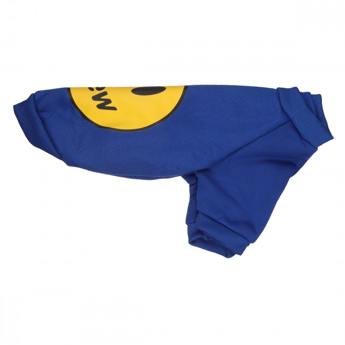 Дизайн свитшота выполнен в современном стиле, придавая вашему любимцу эстетический и дорогой вид.Изготовлен из материалов, которые не линяют при стирке и не требуют большого ухода. Утепленный свитшот для котов в синем цвете с улыбающимся смайлом на спине. Вещь имеет плотную посадку на теле животного благодаря эластичным материалам и манжетам, которые фиксируются на лапах, не сковывая движения и дыхание.Этот свитшот отлично подойдет для прогулок в прохладную погоду и создаст комфорт и уют вашему питомцу.