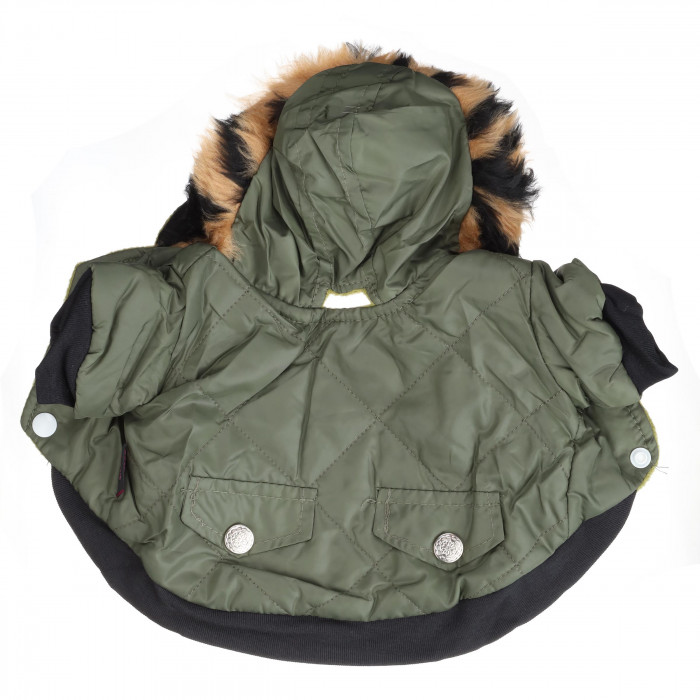 Такая вещь подойдет для праздничных мероприятий и путешествий. Куртка для котов с капюшоном, которая прекрасно защитит голову животного от холода и сквозняков,.Куртка изготовлена из высококачественных тканей, которые не требовательны в уходе и не теряют цвет после нескольких стирок, а также не пропускают ветер и холод.Дизайн куртки выполнен в цвете хаки. Вещь подчеркнет характер и индивидуальность животного, также куртка имеет удобную посадку на теле животного и простые в использовании застежки