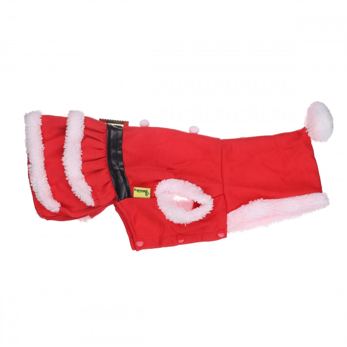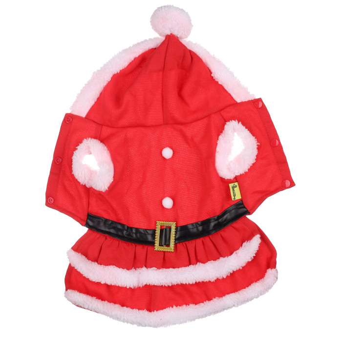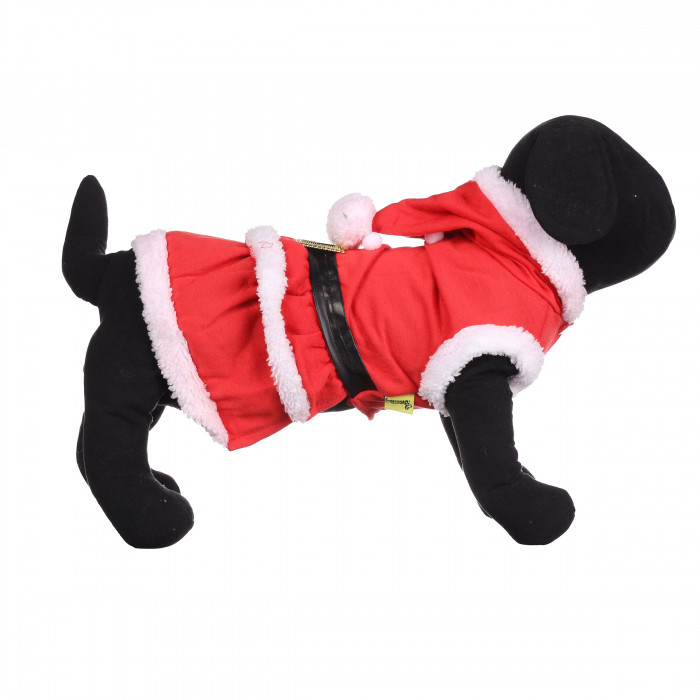 Новогодний костюм для собак девочек выполнен в красном цвете с белыми манжетами и черным поясом, напоминающим новогоднее платье. Этот костюм идеально подойдет для прогулок или рождественских ужинов, придавая вашей любимицы очарование и праздничное настроение. Ваша собака будет выглядеть как настоящая сказочная героиня в новогоднюю ночь. Костюм изготовлен из качественных материалов, которые не теряют цвет и сохраняют свой первоначальный вид даже после нескольких стирок.